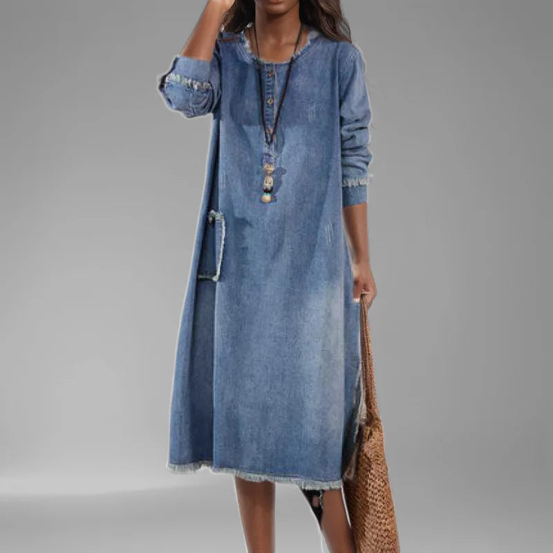 Liselotte® | Løs Denim Kjole med Lange Ærmer