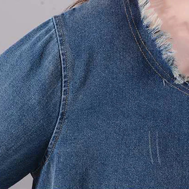 Tidløs Komfort: Denim Kjole med Vaskepels Kant og Lommer