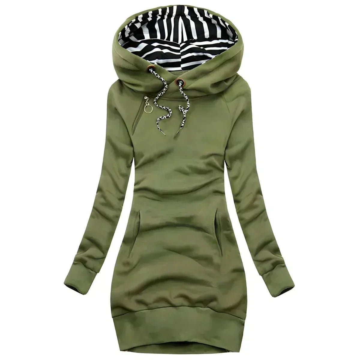 Forbliv stilfuld og varm med den Margrit® Elegante Strikkjole! Forkæl dig selv med den perfekte blanding af komfort og stil med dette unikke design, prydet med et kunstnerisk hjerterytmeprint, der giver dine vinteroutfits et elegant touch. Designet til kolde dage, er det ideelt til et afslappet outfit eller en hyggelig aften. Kombiner varme, elegance og originalitet med denne must-have strikkjole.