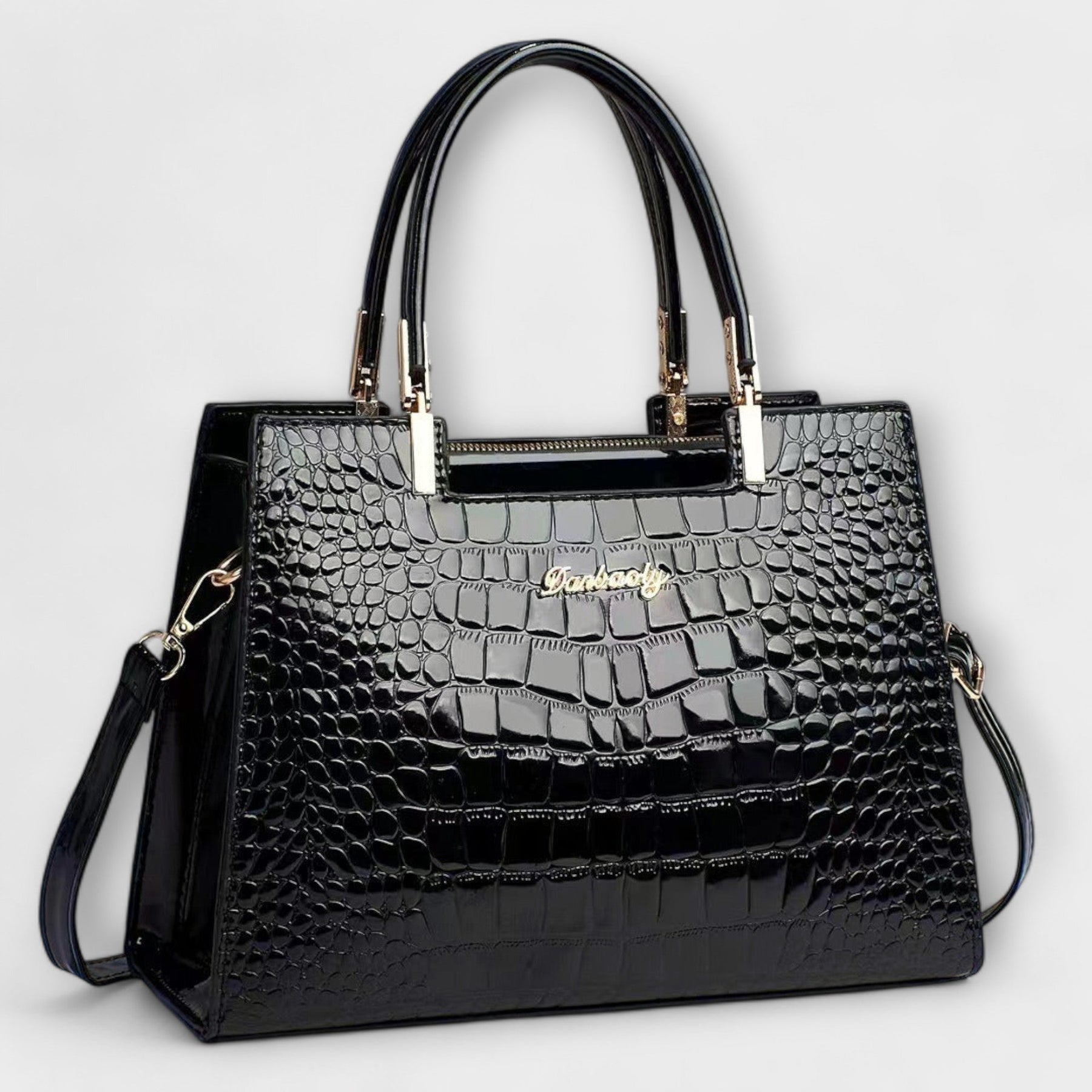 Glossy Croc håndtaske: Elegance og funktionalitet i ét